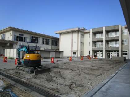 外構工事の様子(前庭、児童玄関前)