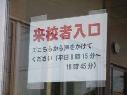 学校に用事がある場合は、北駐車場の奥の出入口から職員室に声をかけていただくか、電話(TEL.432−1415)をしてください。職員が対応します。