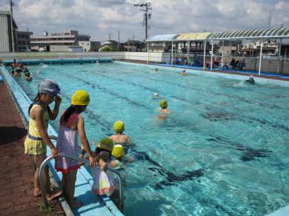 全校を4つのグループに分け、1グループごとに広々と泳ぎます。