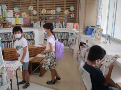図書室を利用するために学校に来ている子供たちがいました。