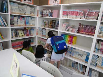涼しい図書室で本を読んだり、借りる本を選んだりしていました。