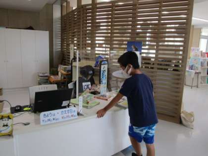 プール開放の前後に図書室を利用する子供たちがいました。