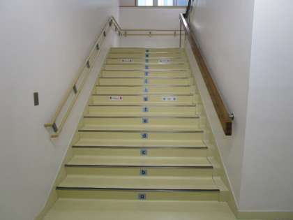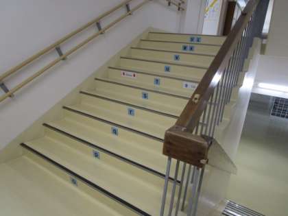 階段1段1段にアルファベットが掲示されました。上がるとき、楽しくなりそうですね。