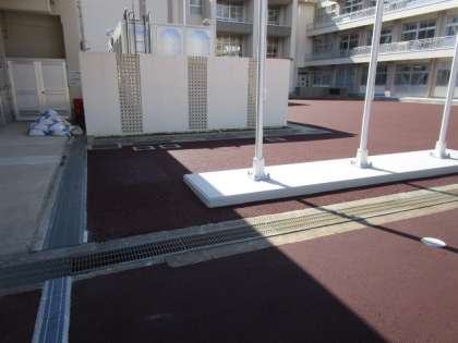 ※体育館北側に「貯水槽」「ベンチ」が設置されました。