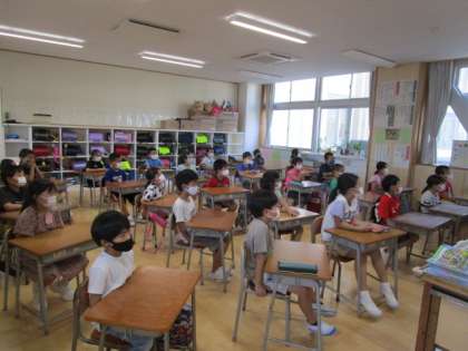 校長先生からは、1学期にお話のあった「自分をよりよく成長させるキーワード」を思い出し、感染症や様々なことに気を付けながら、「やる気」を「前向きに取り組むエネルギー」に変えていきましょうというお話がありました。