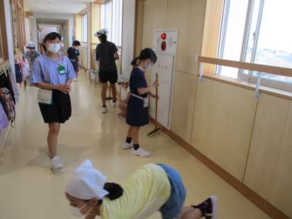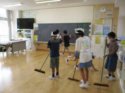 2学期になり、新しい清掃場所で黙々と頑張る4年生です。