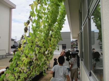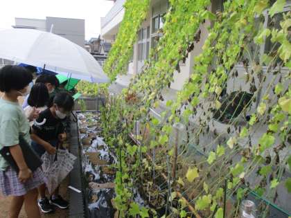 突然、雨が降ってきた中、クロムブックで写真を撮ってから観察カードを書きました。