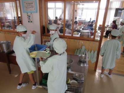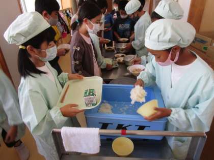 給食準備の様子(5年生)