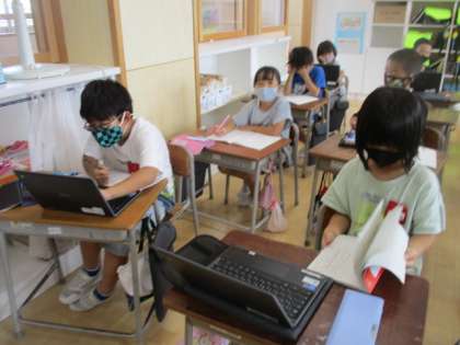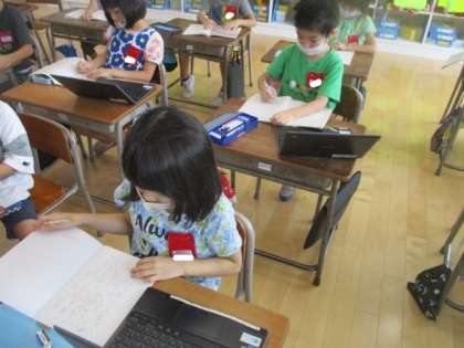 夏休みにクロムブックで撮った「夏だなあと感じたもの」を紹介するために、国語のノートに文章を書きました。夏休みに、自主学習などで日記をがんばっていた子供も多く、とても分かりやすい文章を書いていると感じました。