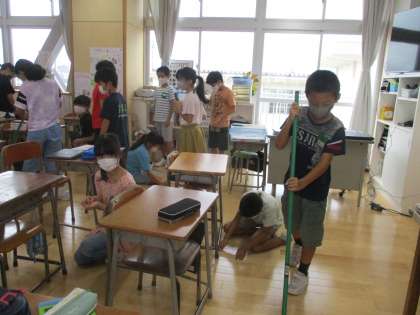 朝8時なると、自分たちで身の回りの整理整頓や清掃を始める、すてきな4年生です。