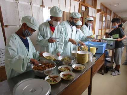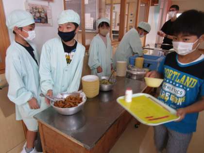 給食準備中(6年生)