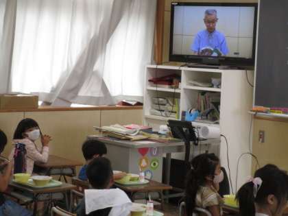 ボランティアの方による読み聞かせ(放送室から)・・・