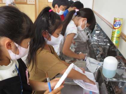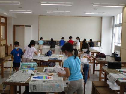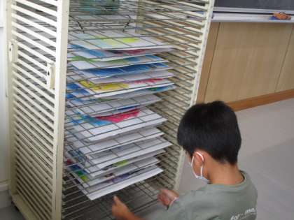 描き終わった後は、一生懸命片付けます。