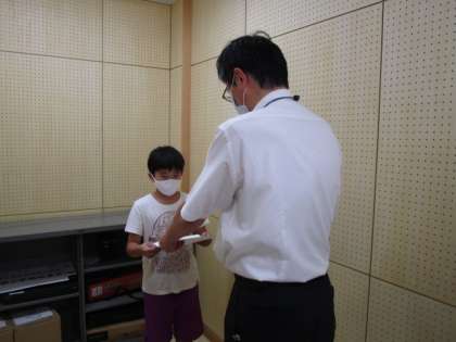 給食の時間に、校内テレビ放送を使って、表彰式を行いました。