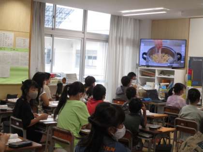 家庭科の時間に、みそ汁の作り方を動画で見ました。授業で学んだ野菜の切り方やだしの取り方を確認することができました。