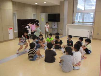 図書室で本を借りた後は、2階プレイルームでハンカチ落としをしたり、オルガンを弾いたりしていました。