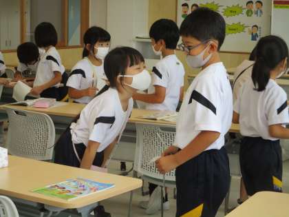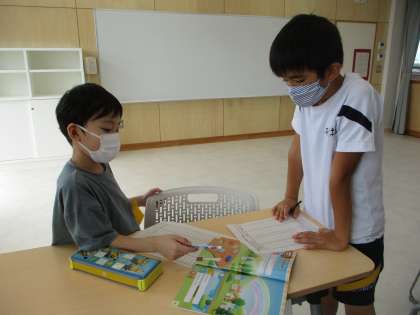 英語で「好きな色」を聞き合いました。