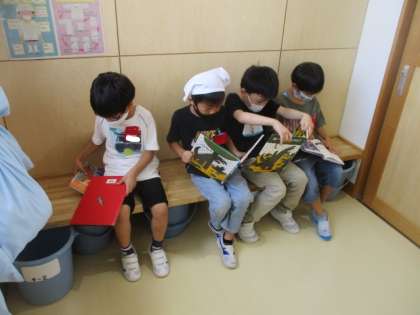 昼休みに図書室で本を借りて、そのまま廊下で読書中。 いい場所を見付けましたね!