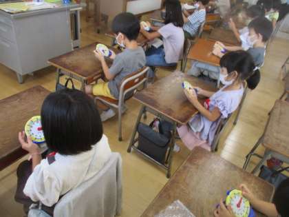 今日は時計を用いて、「○時」と「○時半」の時刻合わせをしました。