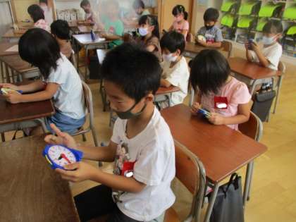 算数科の学習では、「なんじなんぷん」の学習をしています。