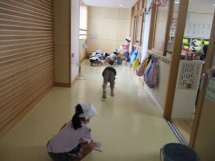 素早く机を下げたり、細かい汚れを擦ったりしていました。