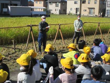 地域の方から「稲刈りの仕方」について聞きます・・・