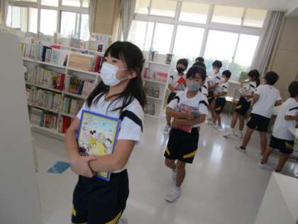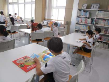 図書室に本を借りに来ました。借り終わった人から読書タイムです。