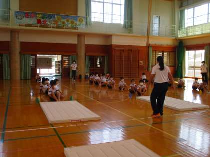前転や後転、側転の仕方のコツを教わり、できなかった技ができるようになった子供もいました。