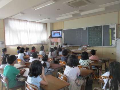 「○○君は、大きな声で聞きやすかった。ぼくも、体育館に通る声で言いたい。」