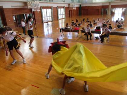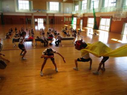 練習中の「獅子舞」を見ていただき、動き方を教わりました・・・