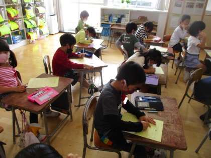 学習発表会に向けてがんばりたいことをカードに書きました。