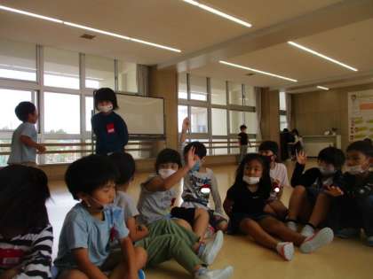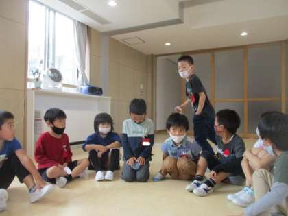 わくわくタイムに2階プレイルームが使用できたので、みんなでハンカチ落としをしました。