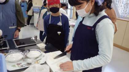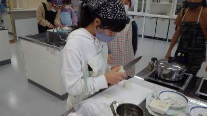 みそ汁の調理実習(6年生)