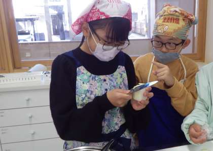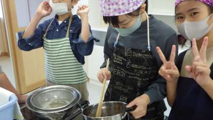 みそ汁の調理実習(6年生)