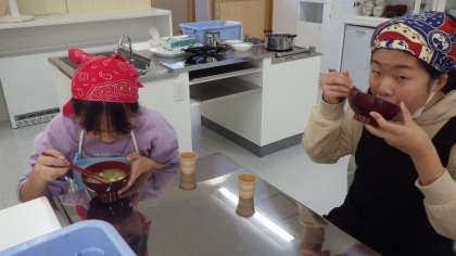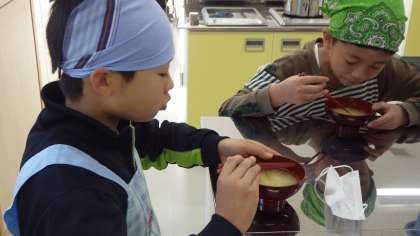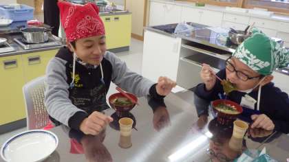 みそ汁の調理実習(6年生)