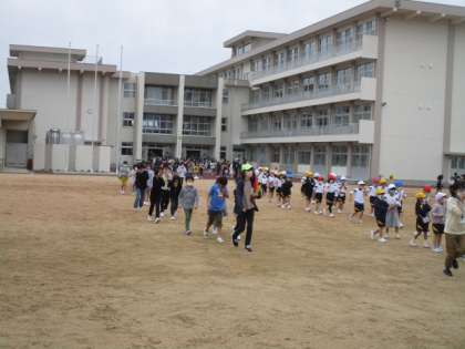 非常階段等を使ってグラウンドへ避難する訓練を実施しました・・・
