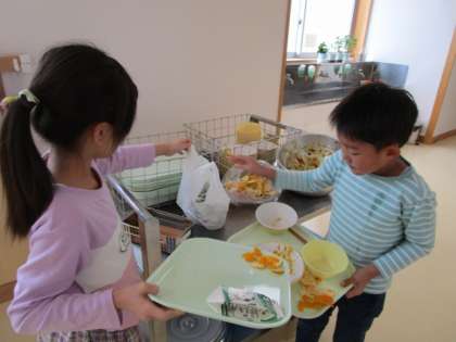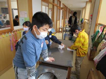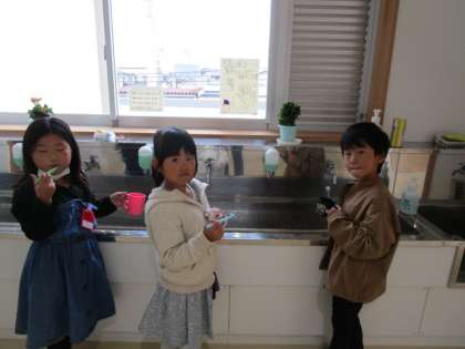 食器や台車をきれいに片付け、歯を丁寧に磨きます。