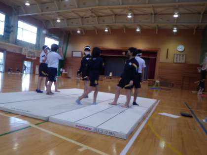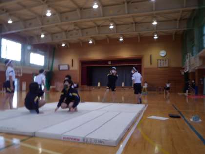 色団のメンバーで、マット運動と跳び箱運動を織り交ぜた演技を目指しています。