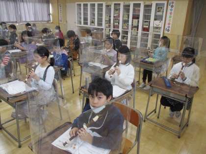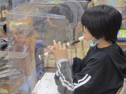 楽譜を見ずに、リコーダーをすらすら演奏しています。