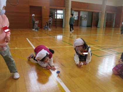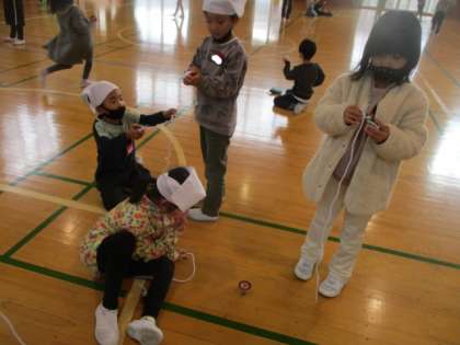 生活科の学習で「こま」の回し方を学習してから、みんな「こま」に夢中です。