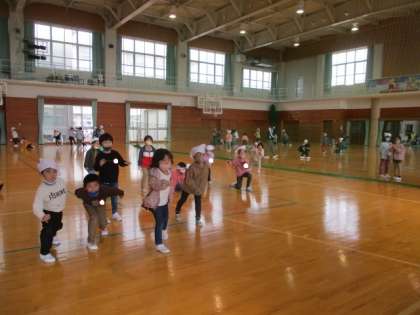 広い体育館で仲良く遊んでいました。