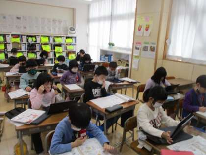 秋見つけで集めたドングリや木の葉を使ってつくる「おもちゃの設計図」を作成しています。何をつくろうかなと、今からわくわくしています。