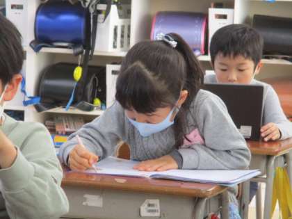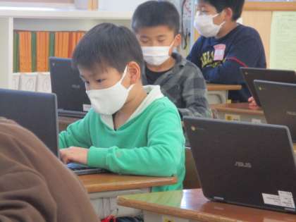 テストを頑張った後は、クロムブックでタイピング練習を頑張っています。タイピングではなく、自主学習を頑張っている人もいました。