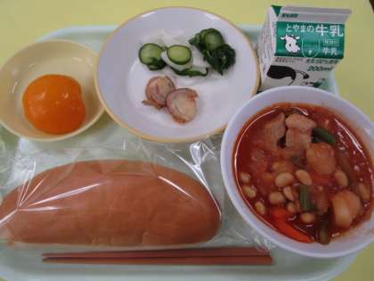 ・米粉コッペパン  ・牛乳  ・ポークビーンズ
