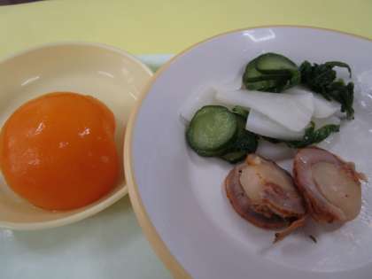 ・ほたての香味焼き ・かぶのサラダ  ・もも缶