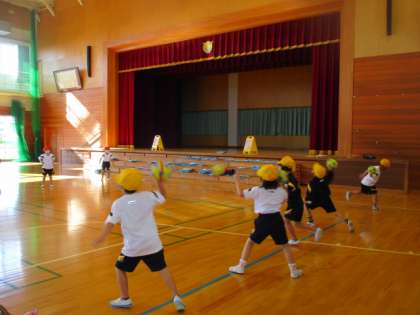 投げるこつは、「手が耳の横を通るように投げる」だそうで、みんな一生懸命練習していました。