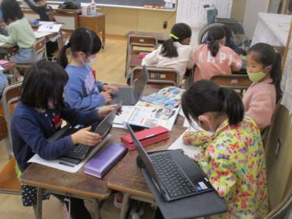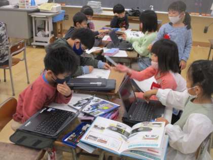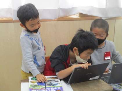 グループで選んだ働く車の「しごと」と「つくり」を探しました。