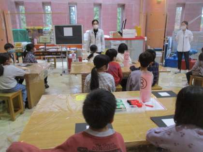 タングラムというパズルを組み合わせてオリジナルの絵をかきました。