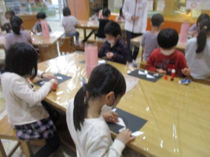 今日、子供たちは、家に持ち帰りました。力作揃いなので、何に見えるかな?と、楽しみながら見ていただけたらと思います。