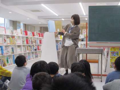 図書室での読み聞かせ(2年生)